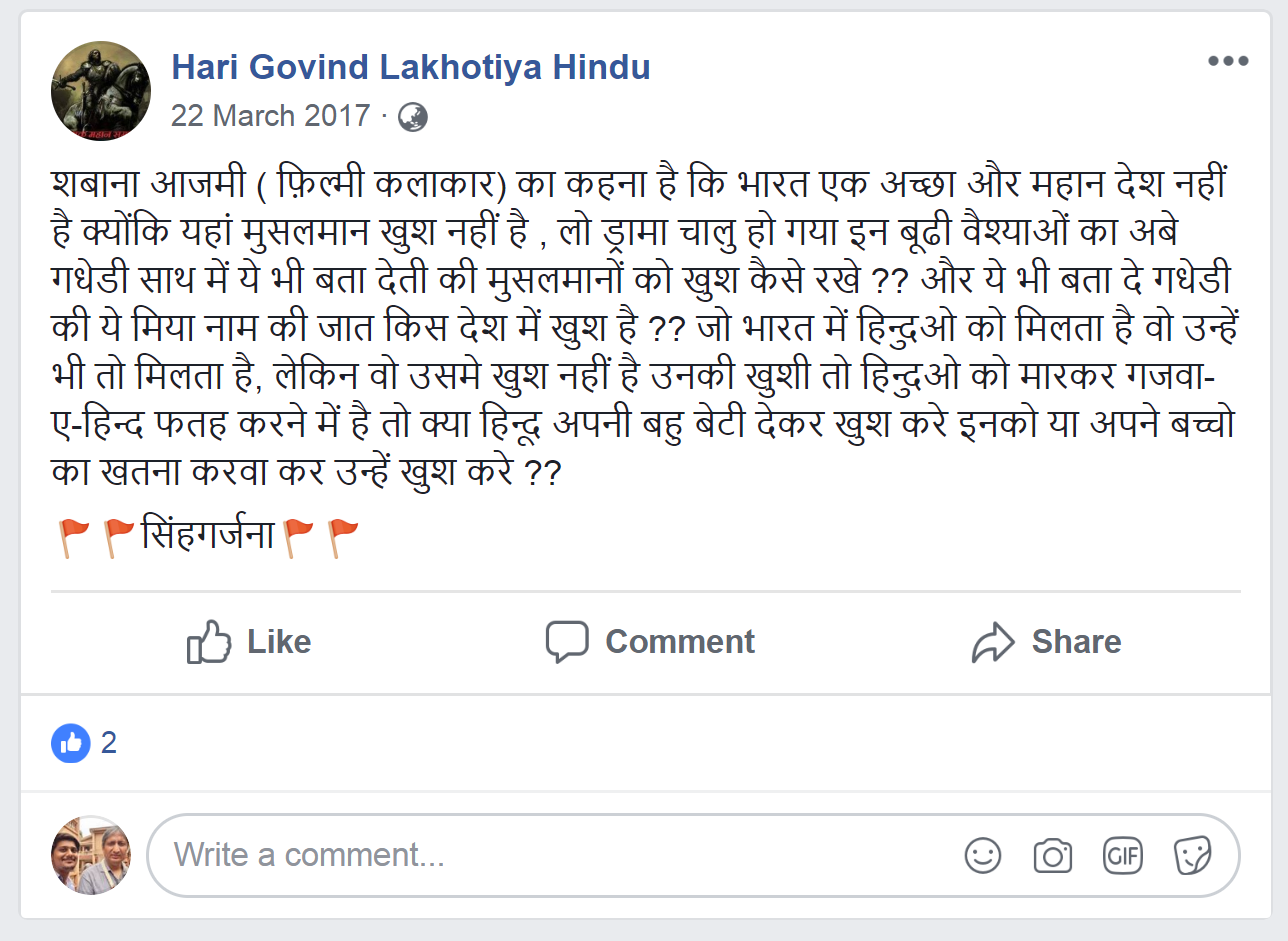 Translation: India is not a good and great country, because the Muslims are not happy here – Shabana Azmi Shabana Azmi, you and your supporters go to Syria and Pakistan so that you agree to get the real happiness as well, then by sharing, answer these people – Santosh Bhartiya