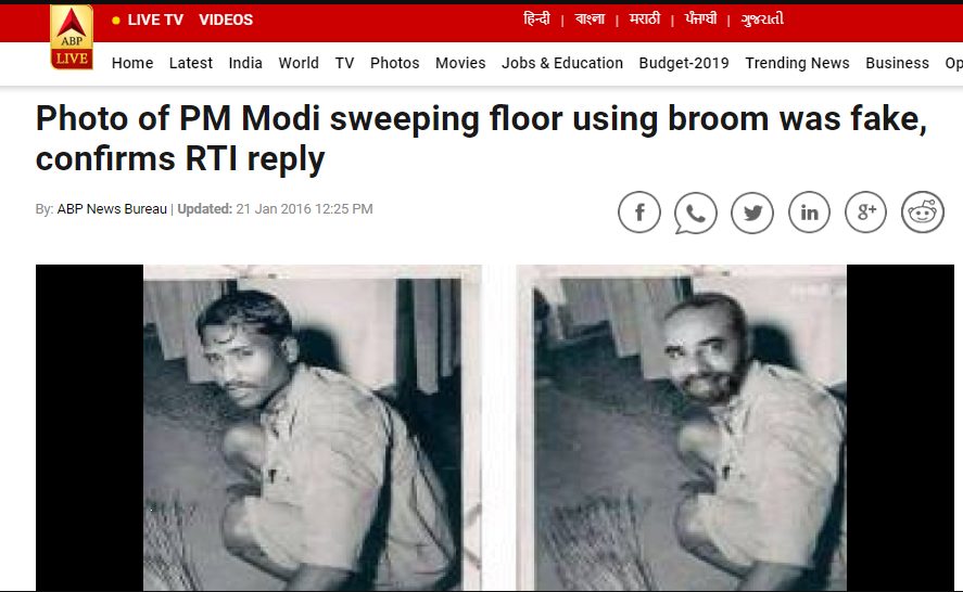 An RTI petition filed in 2016 revealed that the photograph was fake. According to Janta ka Reporter, the RTI reply said, “…It is stated while the information sought does not form part of records, it may be noted that the said photograph is morphed and the person in the photo is not Mr Narendra Modi”. Below we have added a screengrab of ABP Live‘s report on the same.