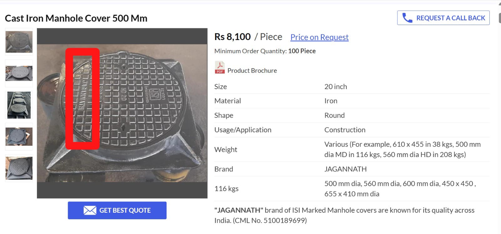 It’s not their fault, they can’t understand, it’s your government’s fault, which has taken over the entire revenue from there for their own pocket. These covers are made in a customized manner as per your order, because no manhole cover with this name is available in the market.