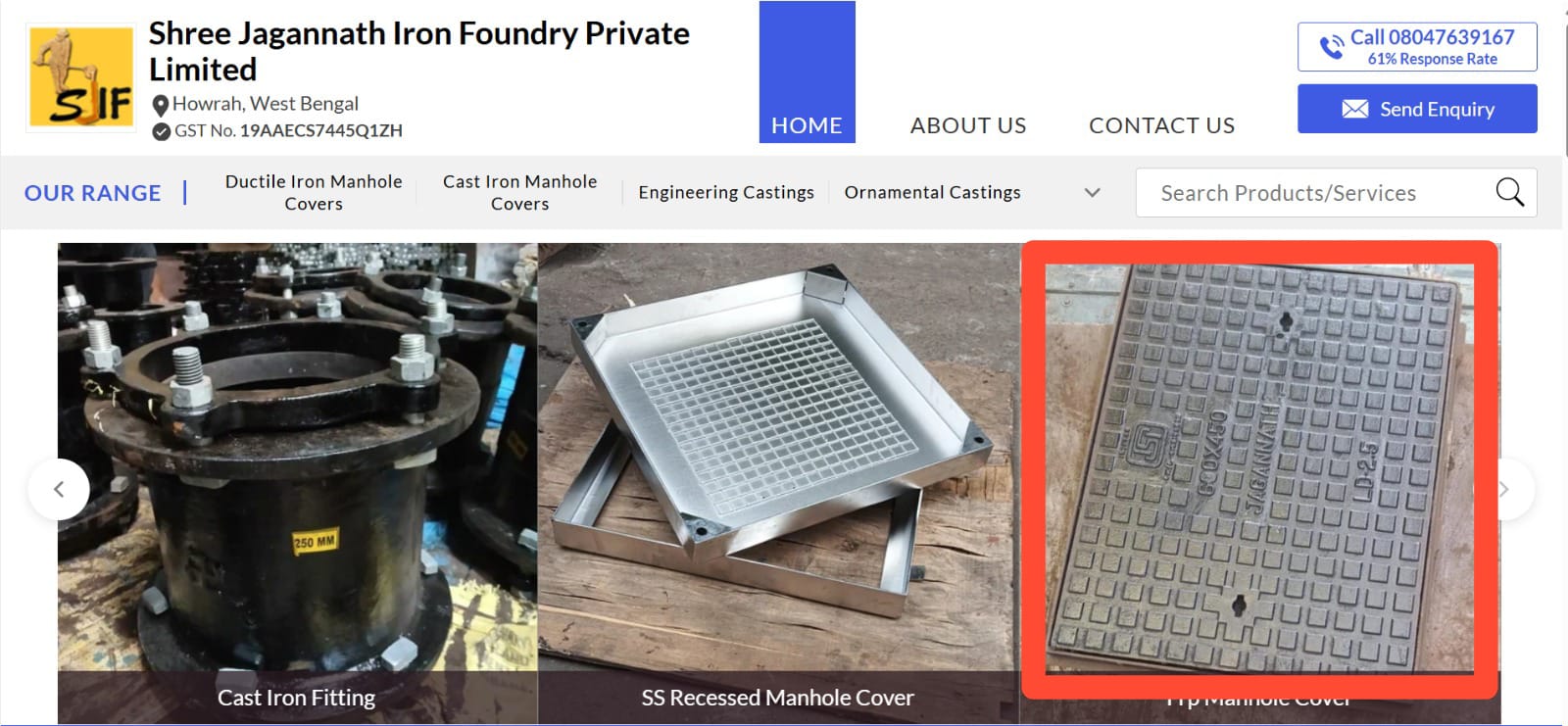 In the gallery depicting its range of products, we found the photo of the same manhole cover. It has the word, Jagannath, written on it. See below:
