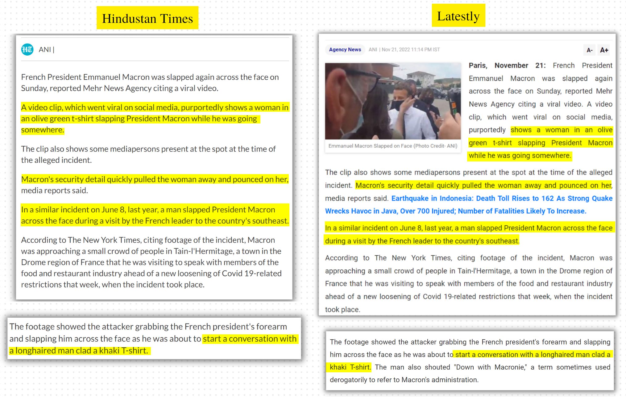 To sum it up, a number of prominent media outlets published news reports based on social media claims that the French President was slapped by an individual. It turns out that the viral clip is actually from 2021. News agency ANI also retracted its report.