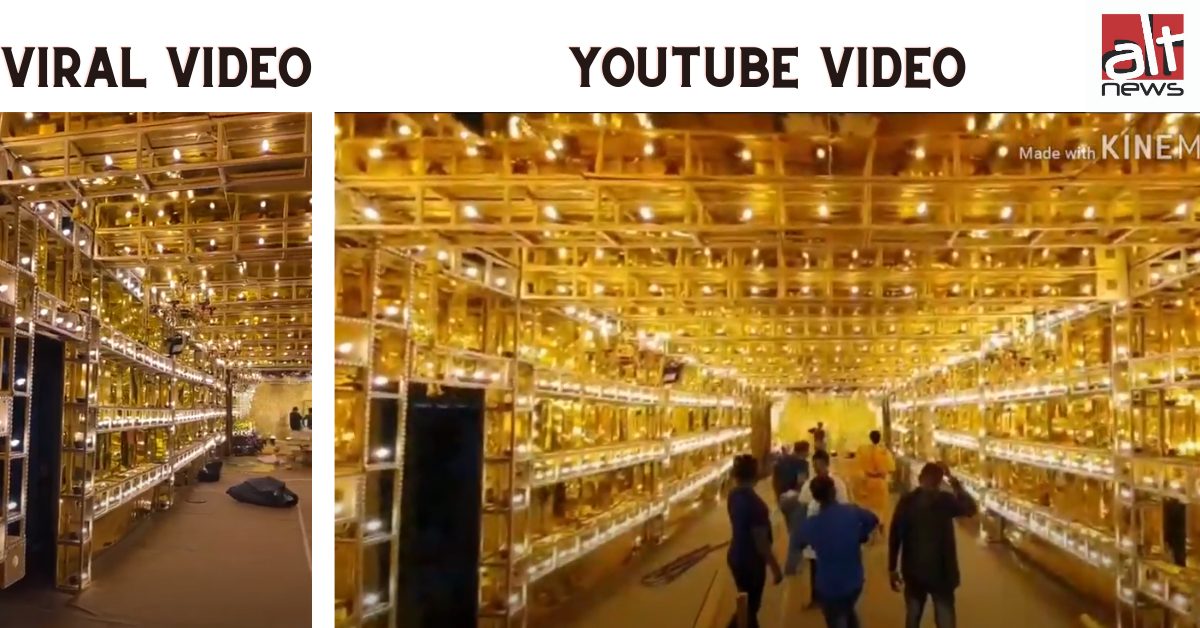 A video of a temple exquisitely decorated is doing the rounds on social media. It is being claimed that the video shows the decoration of the pandal for Ram Mandir Bhumi Pujan in Ayodhya. From the account @RatanKAgrawal, the clip garnered over 100 retweets. “राम मंदिर, अयोध्या के भूमिपूजन के लिए पंडाल की सजावट,” reads the Hindi caption.