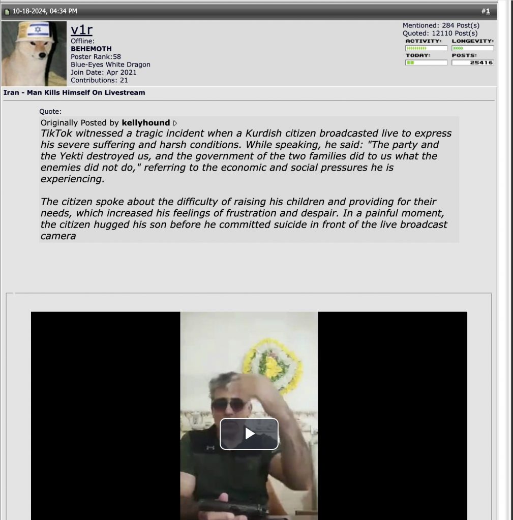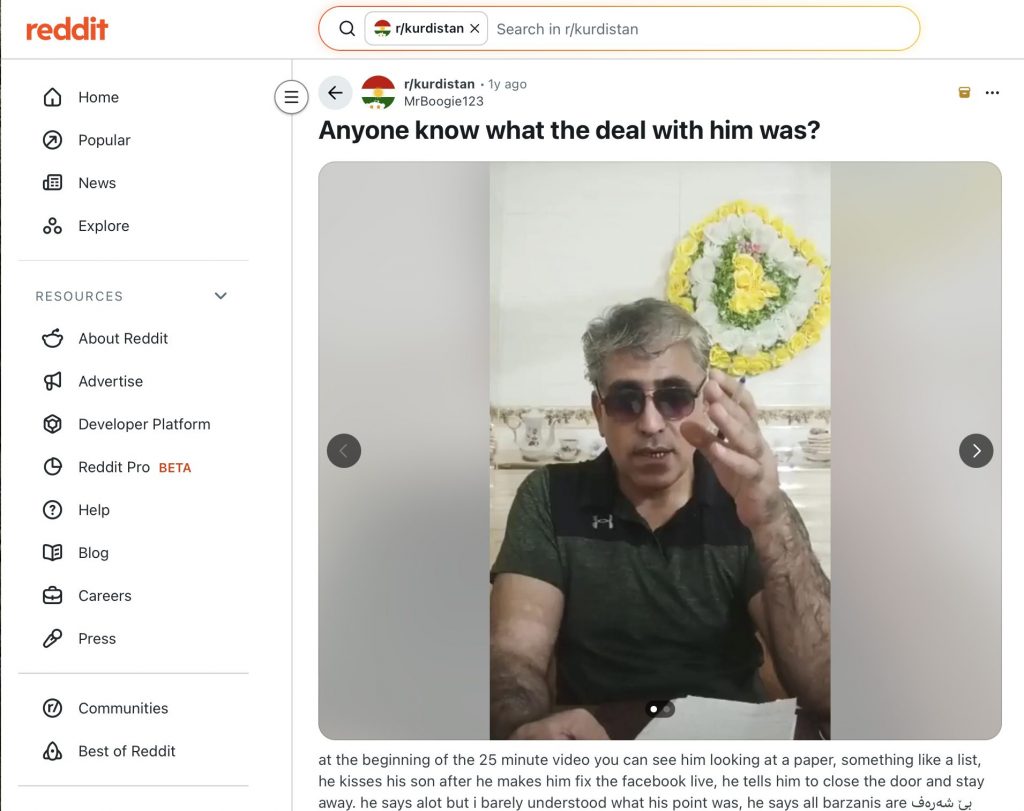 According to the Reddit thread, the viral clip is part of a 25-minute-long video in which a Kurdish man, reportedly distressed over the political environment, died by suicide during a Facebook Live broadcast. In the same thread, another user, Independent-Raise635, claimed that the man and his family had been threatened by the Kurdistan Workers’ Party (PKK), and that the harassment drove him to take the extreme step.