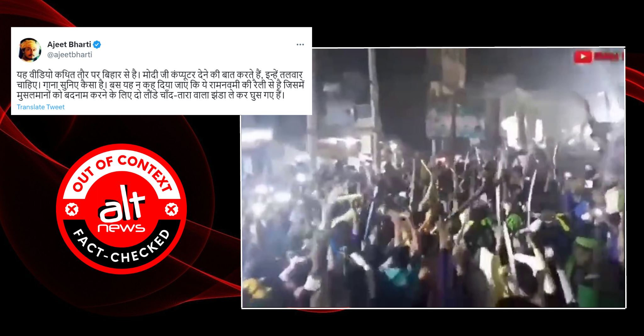 A video that has gone viral on social media shows people in a crowd moving forward on a road with swords in hand. A song playing on a loudspeaker can…