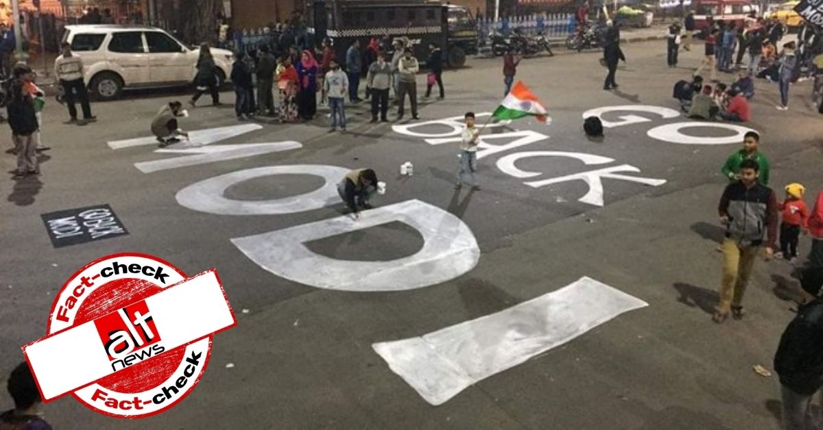 This photo of ‘Go Back Modi’ graffiti is from Kolkata