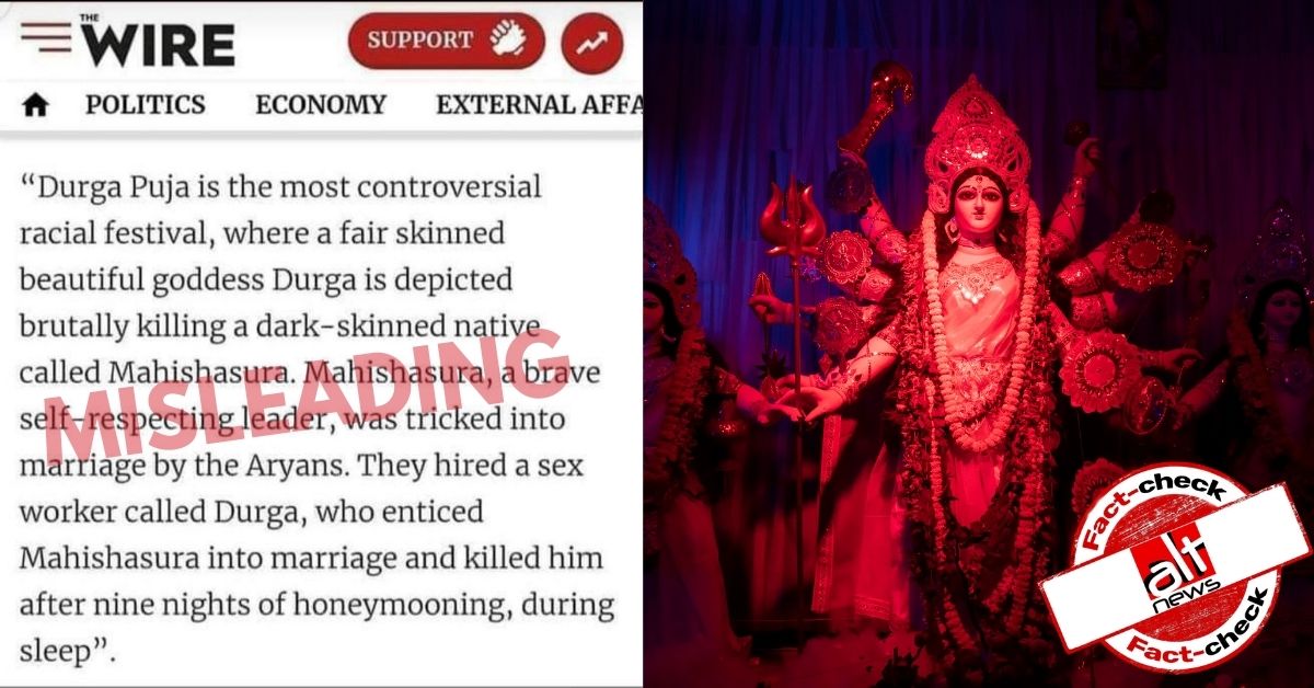 An excerpt from an article in The Wire is making the rounds on Twitter to claim that the news organisation promoted ‘anti-Hindu’ sentiments by terming Durga Puja a “racist festival”…