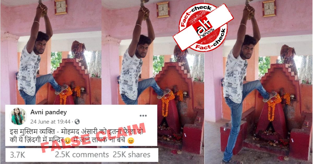 A photograph of a man desecrating an idol inside a temple has been shared with the claim that his name is Mohammad Ansari. One Avni Padeny’s June 24 post drew…