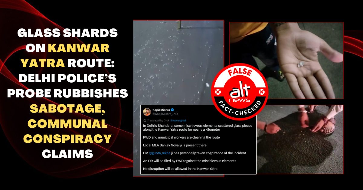 Glass shards strewn on a stretch of road in Dilshad Garden area in Delhi’s Shahdara district through which Kanwariyas were to travel on foot — footage of this took the…