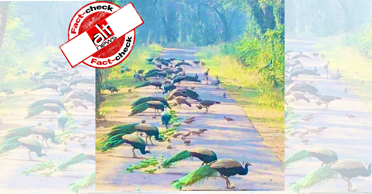 An image of birds like peacocks and parrots eating grains from the ground is circulating on social media. It is being claimed that the image was shot at the Ooty-Coimbatore…