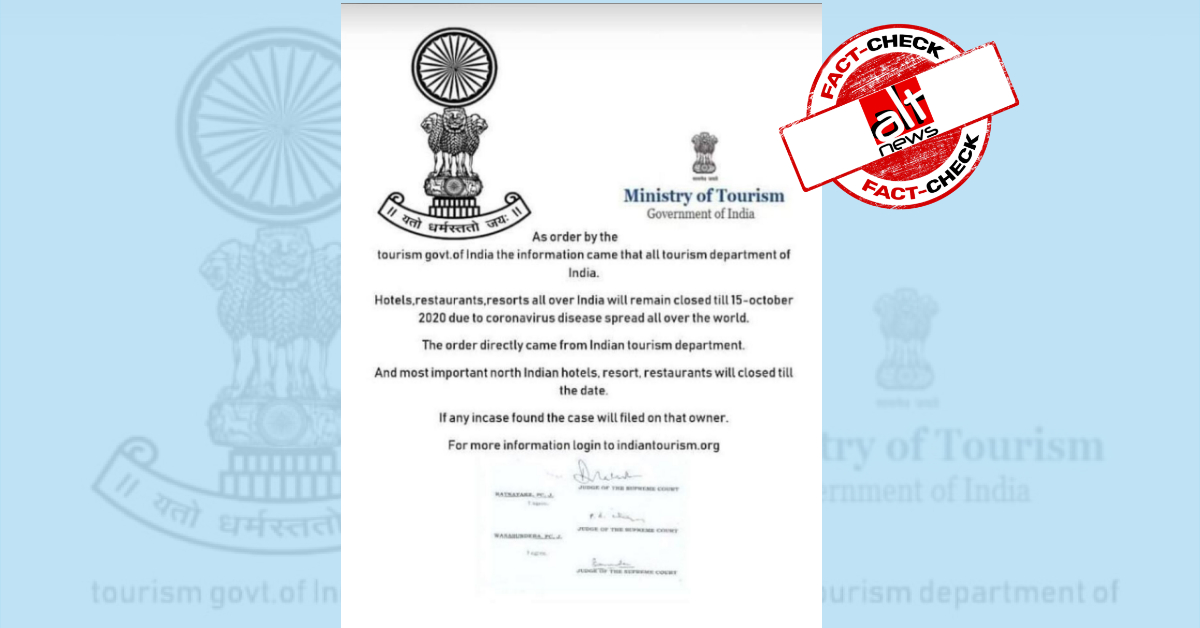 Alt News has received several requests on its official Android application to fact-check a letter circulating on social media. The letter is a supposed order issued by the Tourism Ministry…