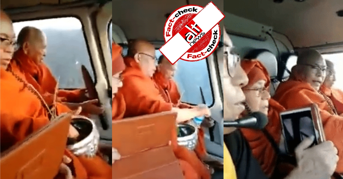 A 2:47-minute video is viral on social media with the claim that monks in China sprinkled a mixture of cow dung and cow urine from helicopters while chanting mantras. The…