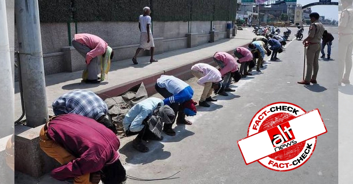 A photograph of policemen making people squat and hold their ears was shared by journalist Rana Ayyub with the claim that these were labourers who were punished for stepping out…