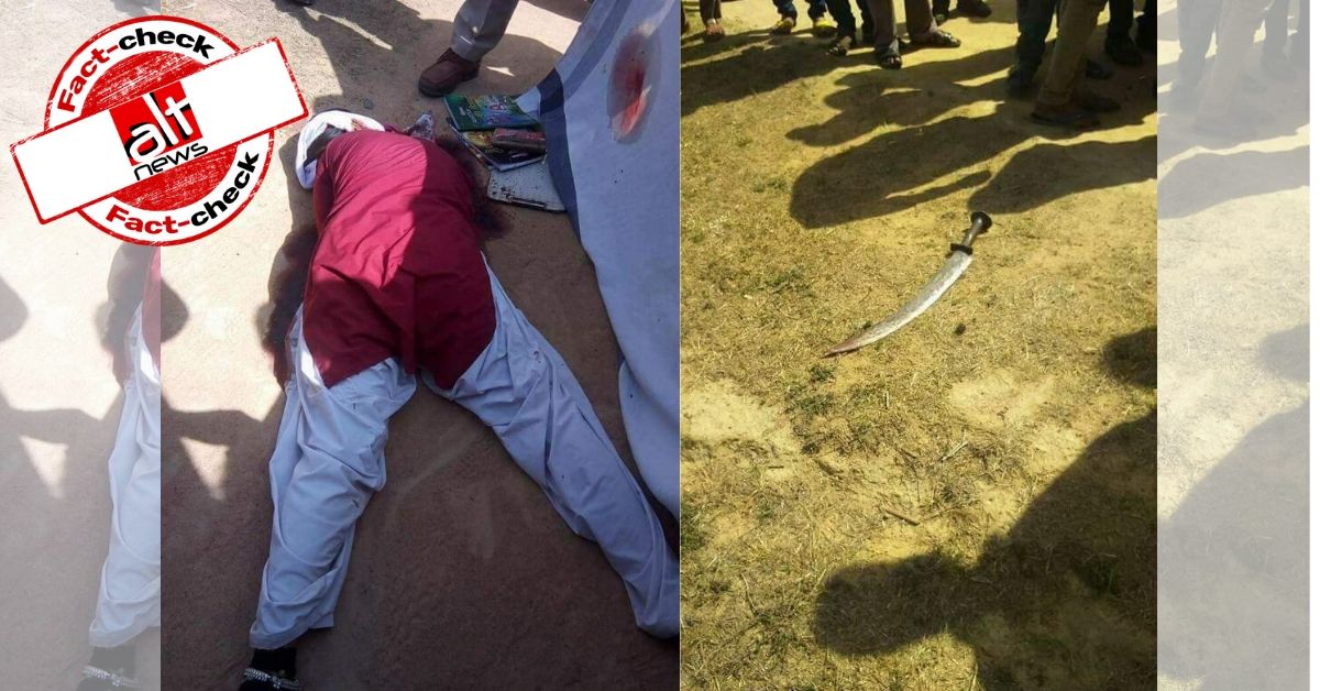 Several social media users have shared two images of a dead body of a woman/girl and a third image of a sword with bloodstains. “Student studying in 11th grade went…