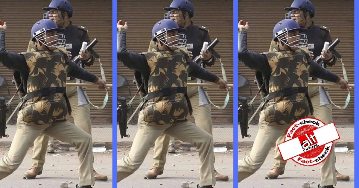 An image of a policeman dressed in riot gear pelting a stone has been shared on social media in the backdrop of communal riots in Delhi’s Jafrabad-Maujpur region. On February…