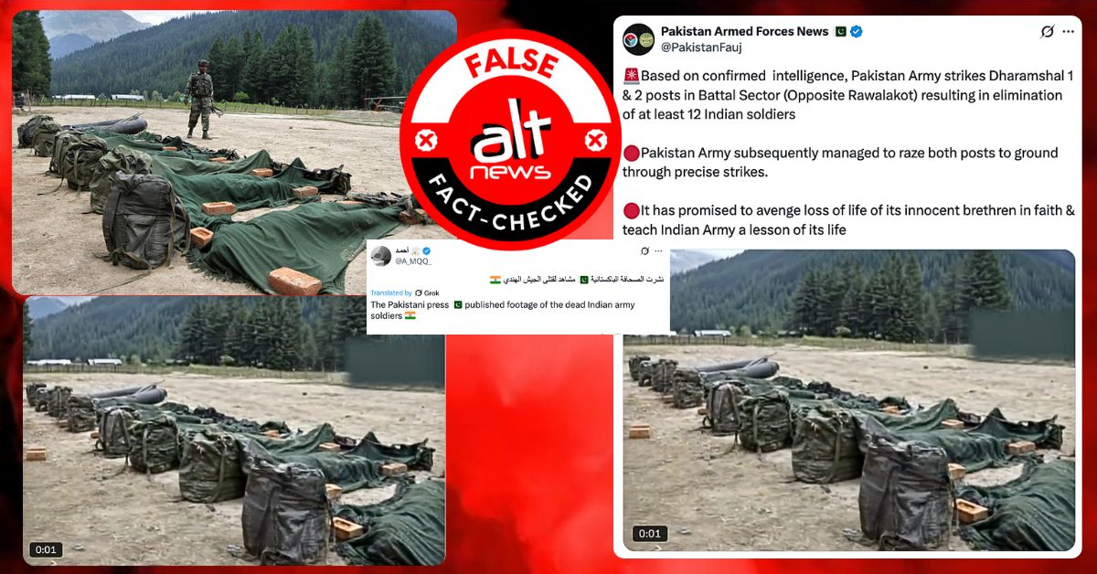 A video showing a row of corpses on the ground covered in green is being widely shared on social media with claims that Pakistan killed 12 Indian soldiers in the…