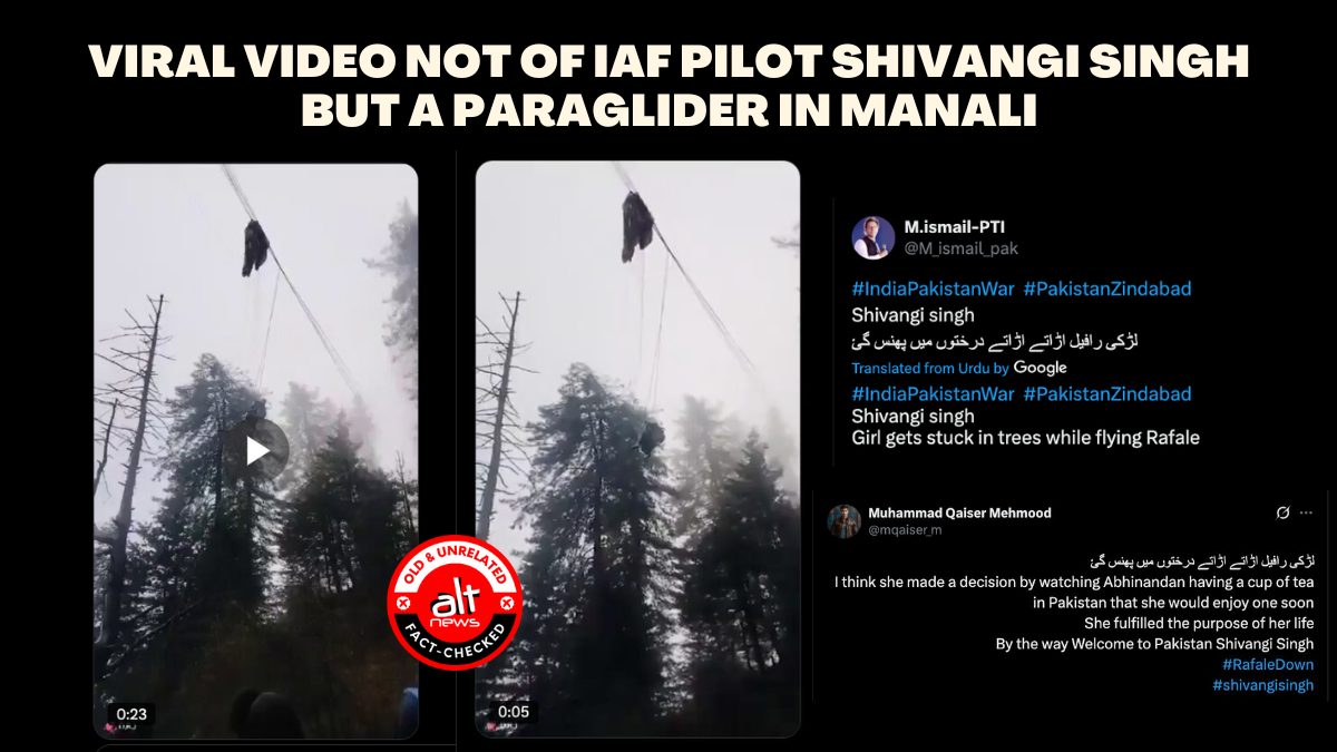 A video showing a person hanging from electric wires amid pine trees has gone viral with claims that it shows Indian Air Force pilot Shivangi Singh stuck while flying a…