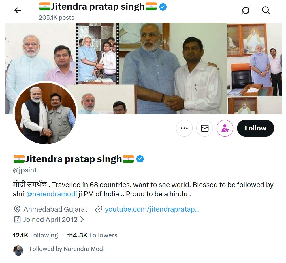 Alarmingly, this user is followed by Prime Minister Narendra Modi on X, and in his profile picture and header, he flaunts photos clicked with PM Modi.