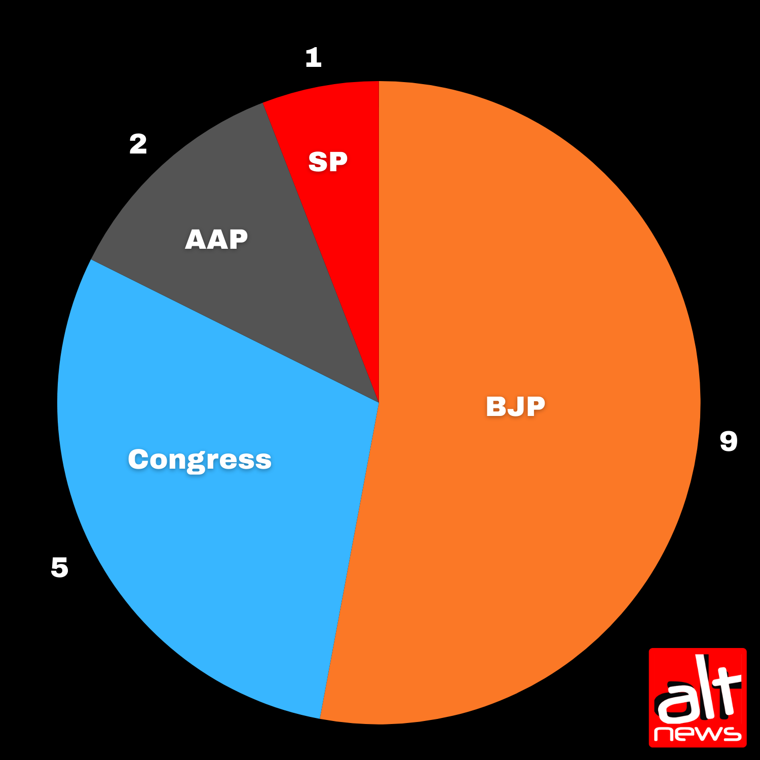 Apart from individuals affiliated with political parties, Alt News data suggest that misinformation was shared and amplified from various forms of official channels, including social media handles of political parties and government-affiliated organisations or individuals representing the same. In total, we found 17 such instances, out of which nine pages were BJP-affiliated, including the official X handle of the BJP (@BJP4India) and five pages affiliated with the Congress, two with the Aam Aadmi Party and one with the Samajwadi Party.