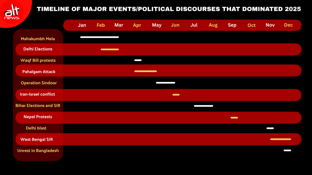Like other years, in 2025 too, debunking false political narratives and propaganda occupied a large part of Alt News’s work in the field of misinformation and disinformation. The year witnessed several major headline-making events, including India’s launch of Operation Sindoor against Pakistan in May and elections in multiple Indian states. As is often the case during such high-impact events, they triggered a surge in misinformation, compounding confusion and misleading the public. The present analysis shows how much of political misinformation was driven by political parties, leaders, social media influencers, media outlets et al, who were targeted most and who benefited from them.