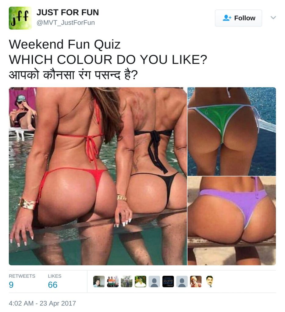 Or what is your favorite colour, and one has to choose a colour corresponding to bikini bottoms of the following women.