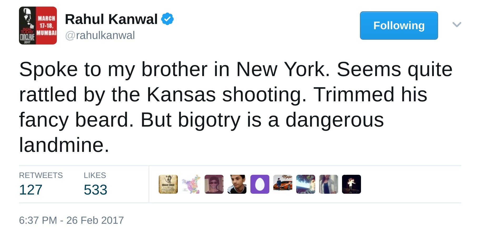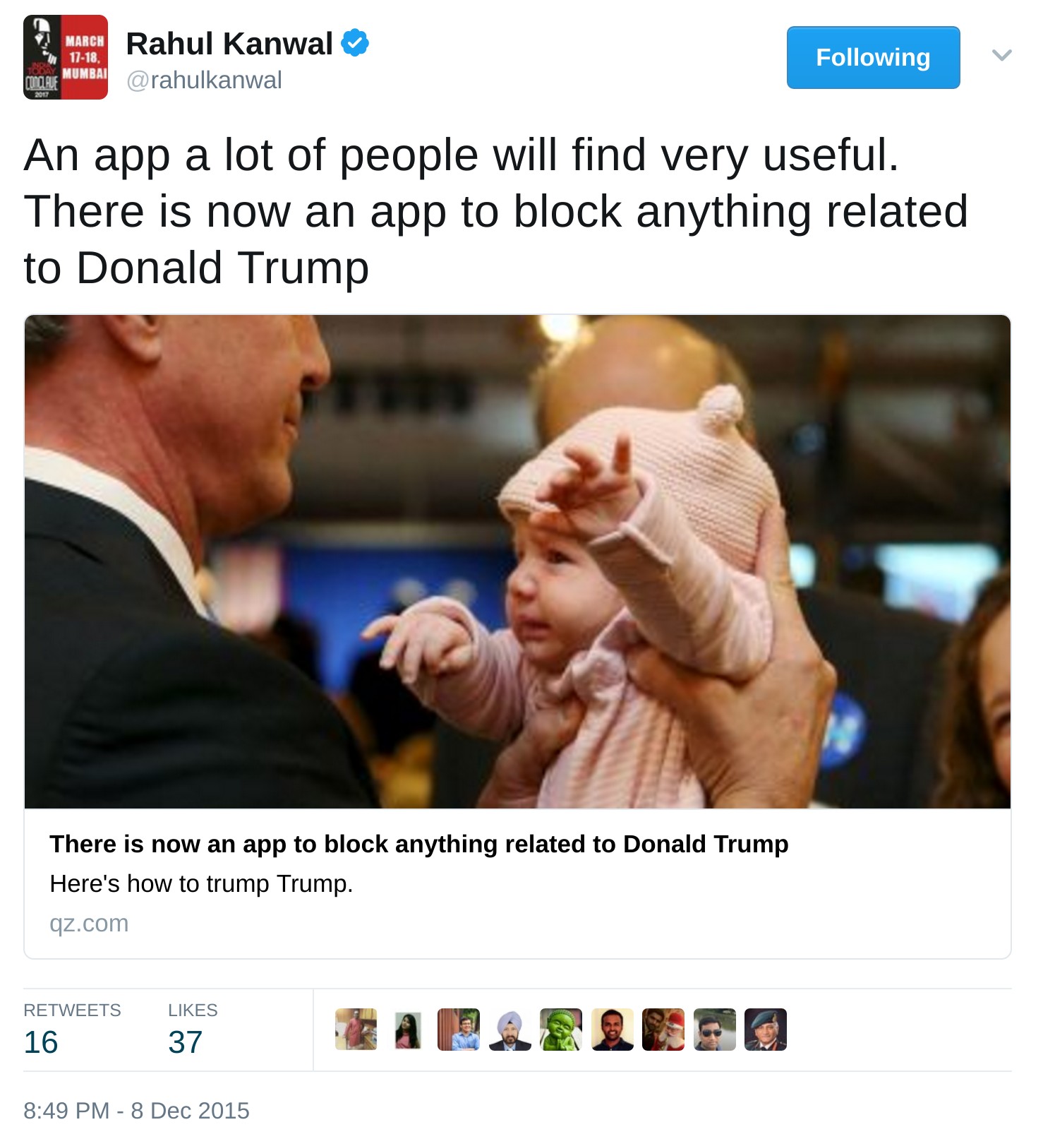 He thinks that the bigotry that Trump has brought with him is a dangerous landmine, an opinion influenced by the fact that his brother felt rattled because of his ‘fancy beard’. In fact, Rahul Kanwal’s dislike for Donald Trump is such that he even recommends an application that will block anything related to Donald Trump.