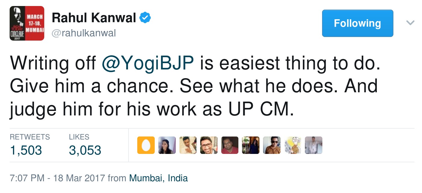 Oops! Apparently, not. Rahul Kanwal thinks that Yogi Adityanath’s version of bigotry deserves ‘a chance’. Rahul Kanwal thinks that a man who has given speeches in which he’s warned that “If they kill one Hindu, we will kill 100 of theirs” deserves a chance. Rahul Kanwal thinks that a man who thinks that inter-religious marriages are a case of Love-Jihad deserves a chance. Rahul Kanwal thinks that a man who offers Guns to Hindus in Dadri after the murder of Mohammad Akhlaq deserves a chance. Rahul Kanwal thinks that a man who demanded for the release of all the accused in the Dadri case deserves a chance. “Give him a chance, See what he does. And judge him for his work as UP CM”.