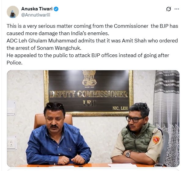“As you all know, the unfortunate incident that took place yesterday in Leh… Twenty people were critically injured. I appeal to the people of Ladakh— we were ordered by the home ministry to arrest Sonam Wangchuk. We were directed by Amit Shah’s office to accuse him of being a Pakistani agent…”