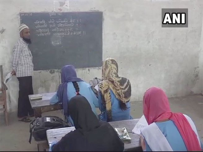 Goarakhpur: Sanskrit, among other subjects, being taught at Darul Uloom Husainia madrasa. Principal of the madrasa says ‘It’s a modern madrasa under UP Education board & subjects like English, Hindi, Science, Maths & Sanskrit are taught here. They are also taught Arabic’. pic.twitter.com/g2Lc6Hm6Pq