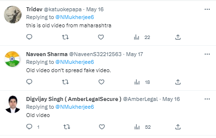 First, we noticed that under Naren Mukherjee’s tweet, a few users had commented that the video is old and some even mentioned that it is from Maharashtra.