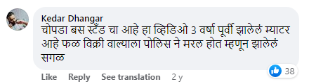 Under the video, we also came across a comment made on March 9, 2021, that says in Marathi, “This video is from Chopda bus stand. It is from 3 years back. Everything happened because the fruit seller was hit by the police”.