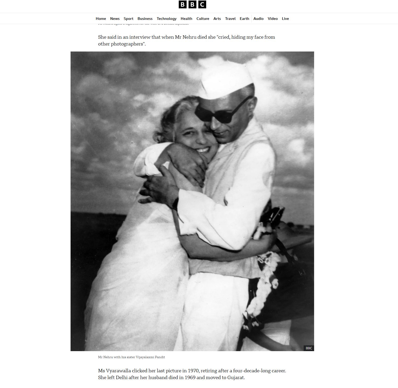 Upon running a relevant keyword search related to image in the middle, we came across a BBC report from 2017 containing a photo gallery on the works of India’s first woman photojournalist, Homai Vyarawalla. The last image in this gallery is the same as the one in the middle of the collage. It’s a photo of Nehu with his sister Vijaya Lakshmi Pandit. (Alternatively spelt in some documents as Vijalalakshmi or Vijayalaxmi)