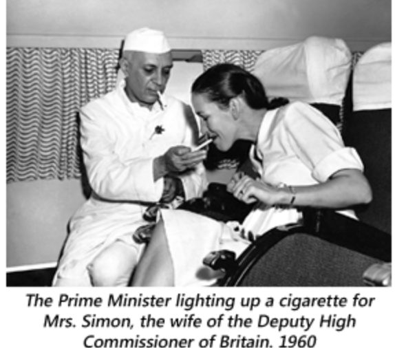 The third picture on the collage is from 1955 when Nehru was received at the London Airport by United Kingdom Prime Minister Sir Anthony Eden and Vijaya Lakshmi Pandit, then India’s high commissioner to the UK. The woman giving a peck on the Indian Prime Minister’s cheek is Pandit’s daughter and Nehru’s niece, Nayantara Sahagal.