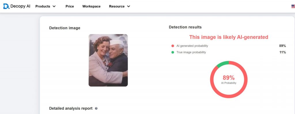When we checked the authenticity of the image on a AI content detection platform, the result showed an 89% chance of it being AI generated.