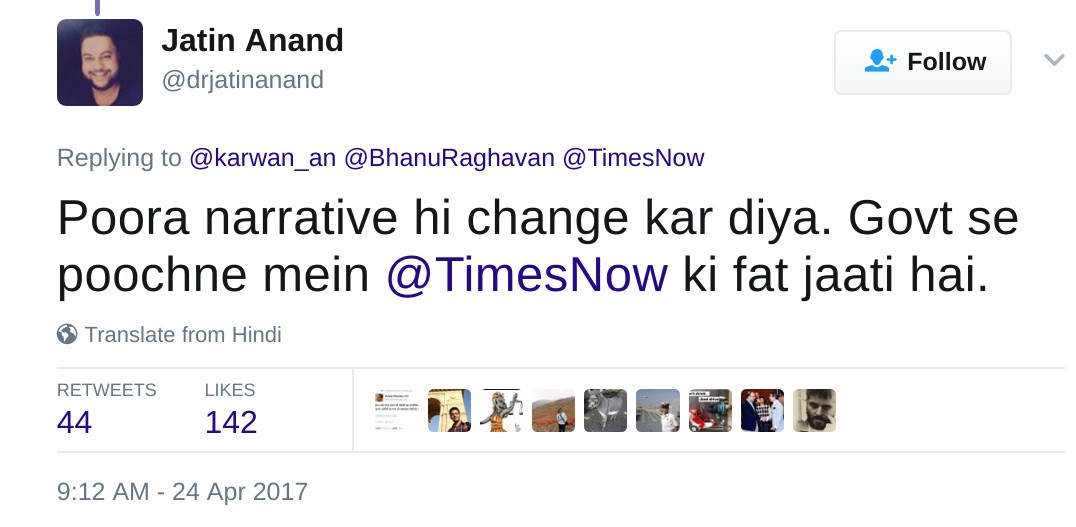 — TIMES NOW (@TimesNow) April 24, 2017