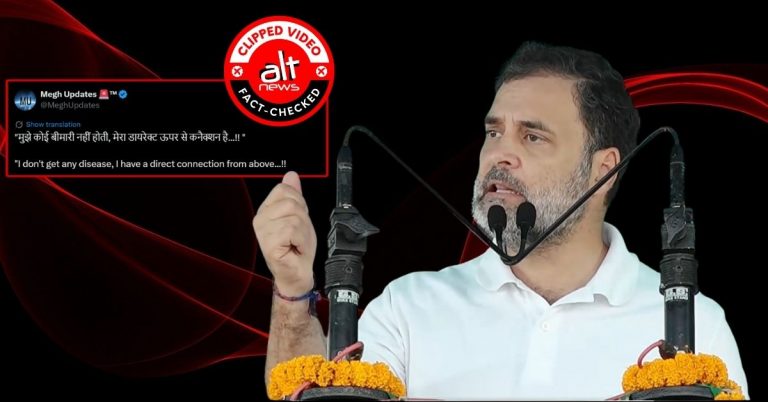 A 15-second-long clip in which Rahul Gandhi says, “I don’t get any disease, I have a direct connection from above, I directly speak to God,” is being shared by social...