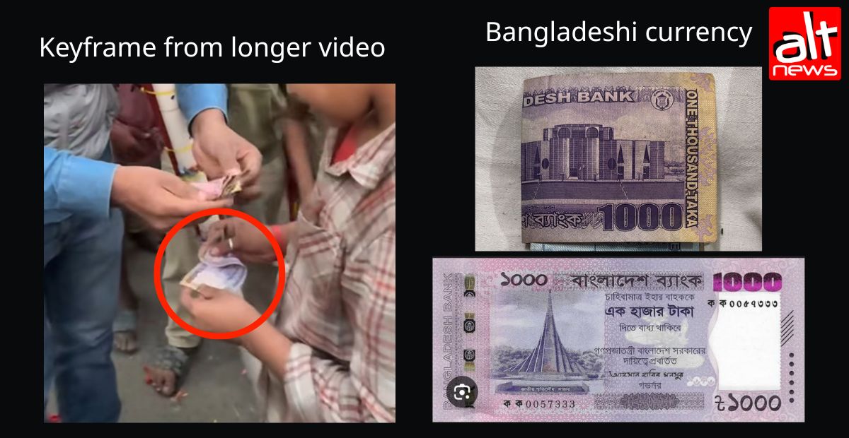 The conversation took place in Bangla, and the dialect indicated that it was from Bangladesh. While the word taka in Bangla can colloquially refer to Indian rupees, the currency shown in the video cannot be Indian, as Rs 1,000 notes notes are no longer in circulation. Moreover, the 1000-taka note visible in the video matches Bangladeshi currency.