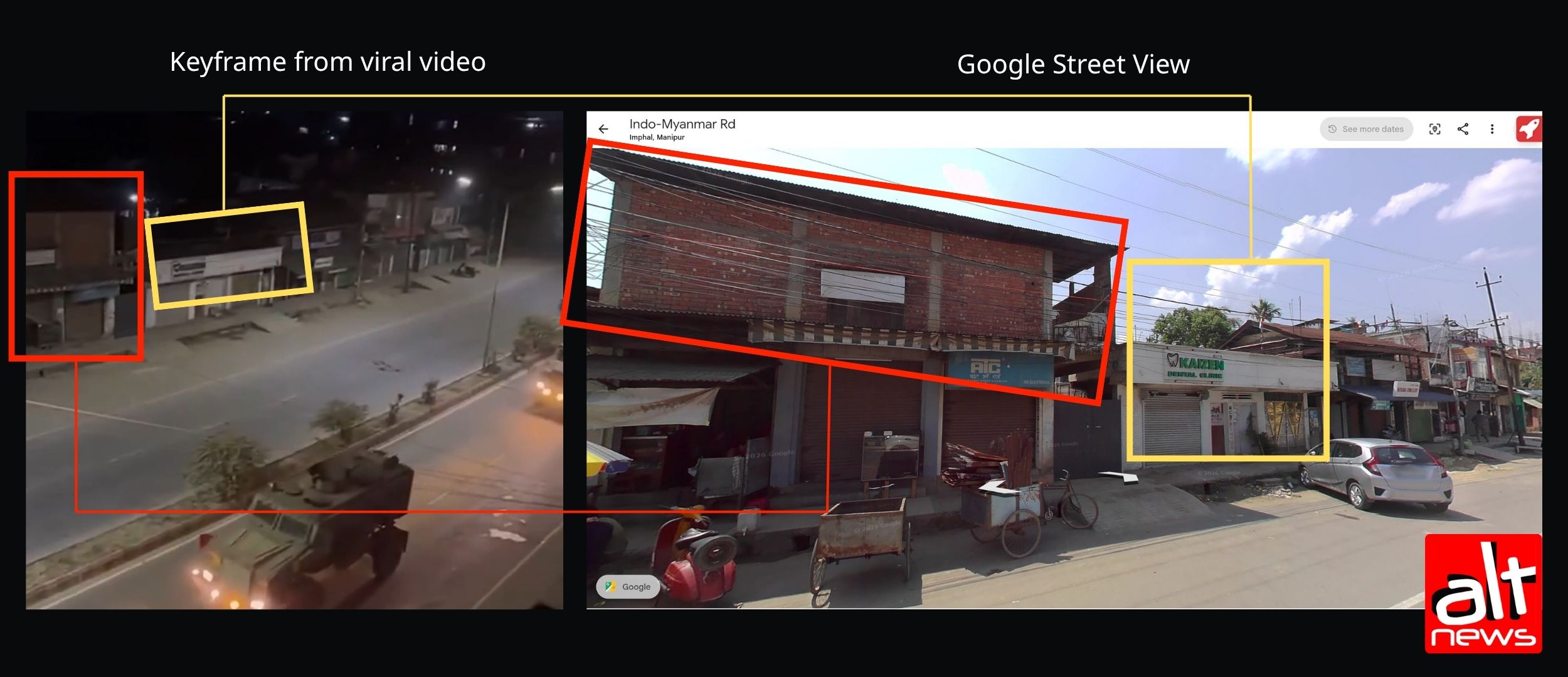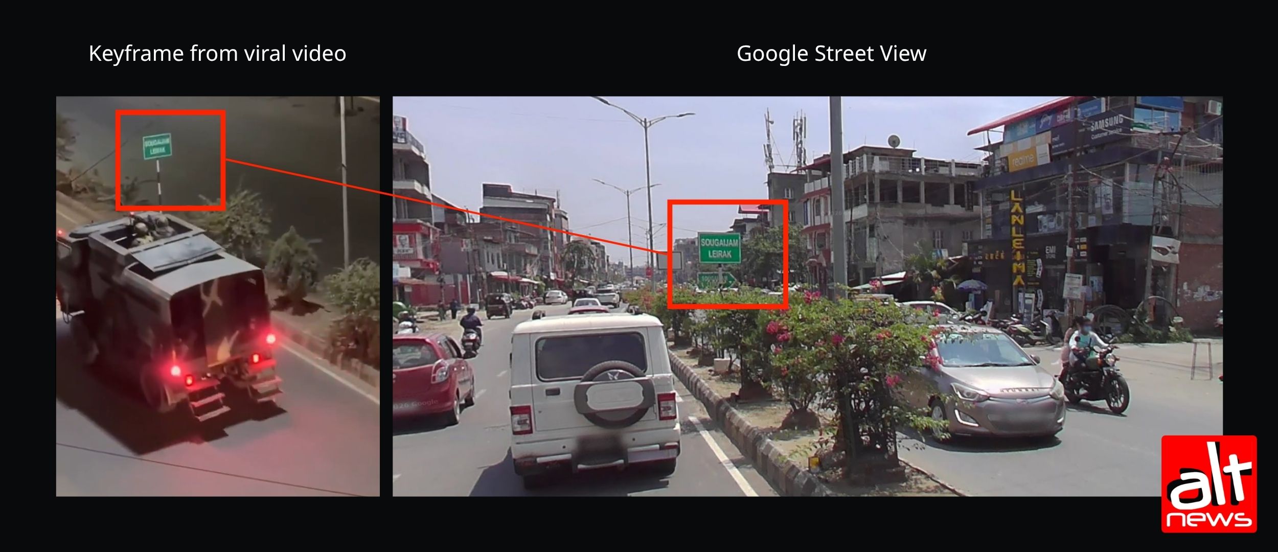 This conclusively proves that the viral video is not from Bengal and not related to the upcoming assembly polls. Alt News geo-located the place shown in the video and found that the footage was from Imphal.