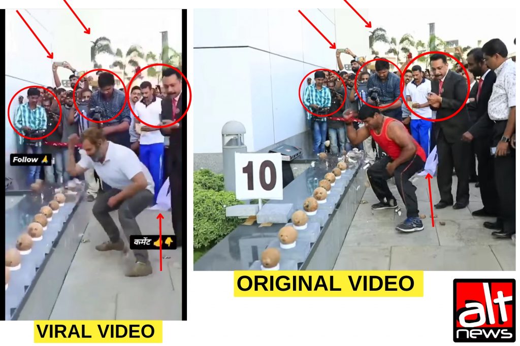 Thus the viral clip is actually a 2017 video of a man from Kerala smashing coconuts, featured in Guinness World Records. This old video was morphed using AI to make it seem like Rahul Gandhi was breaking the coconuts in a show of strength.