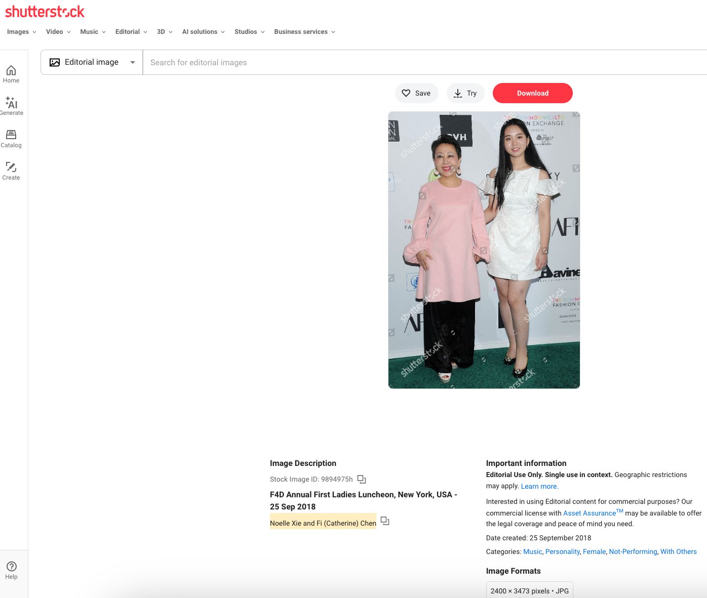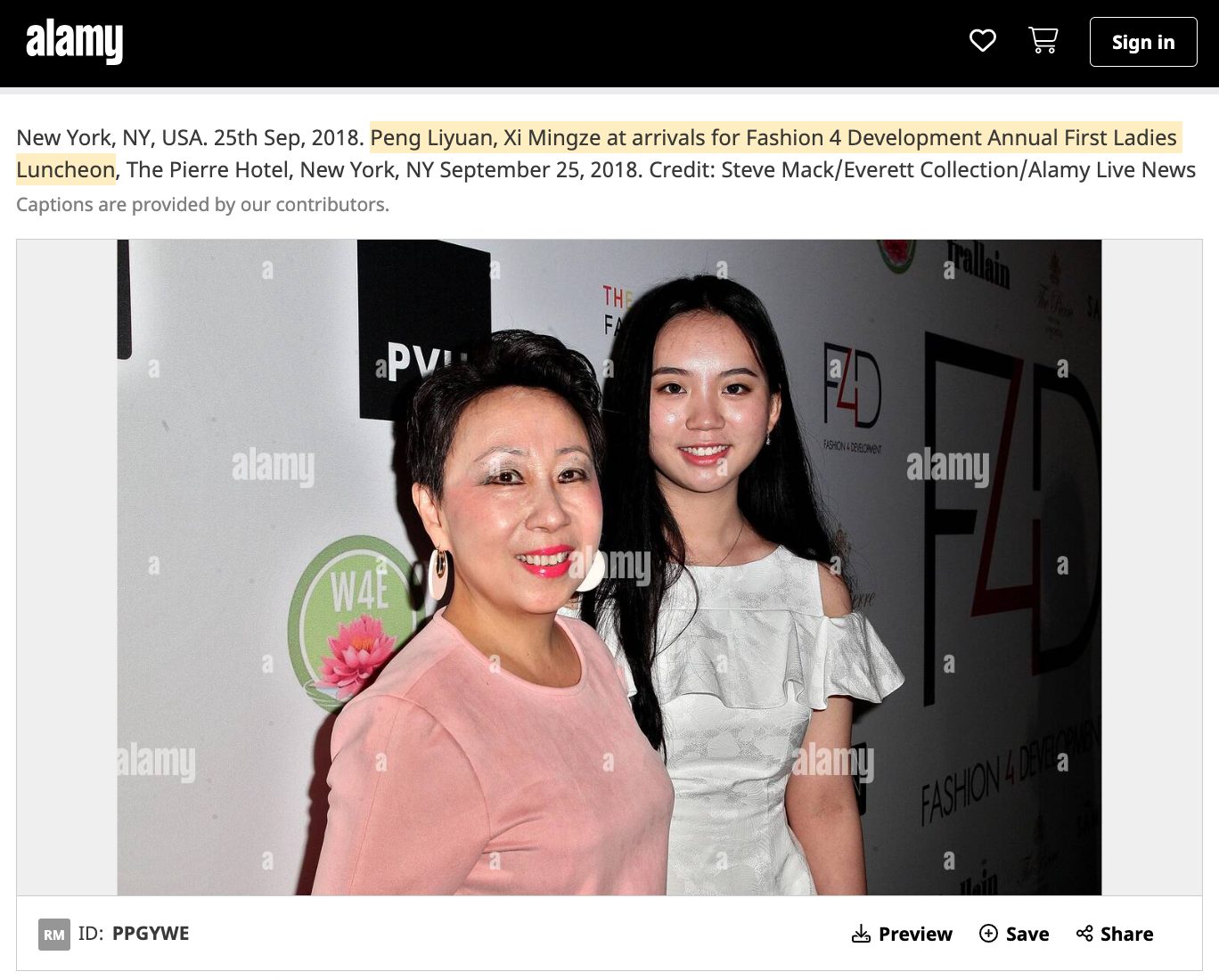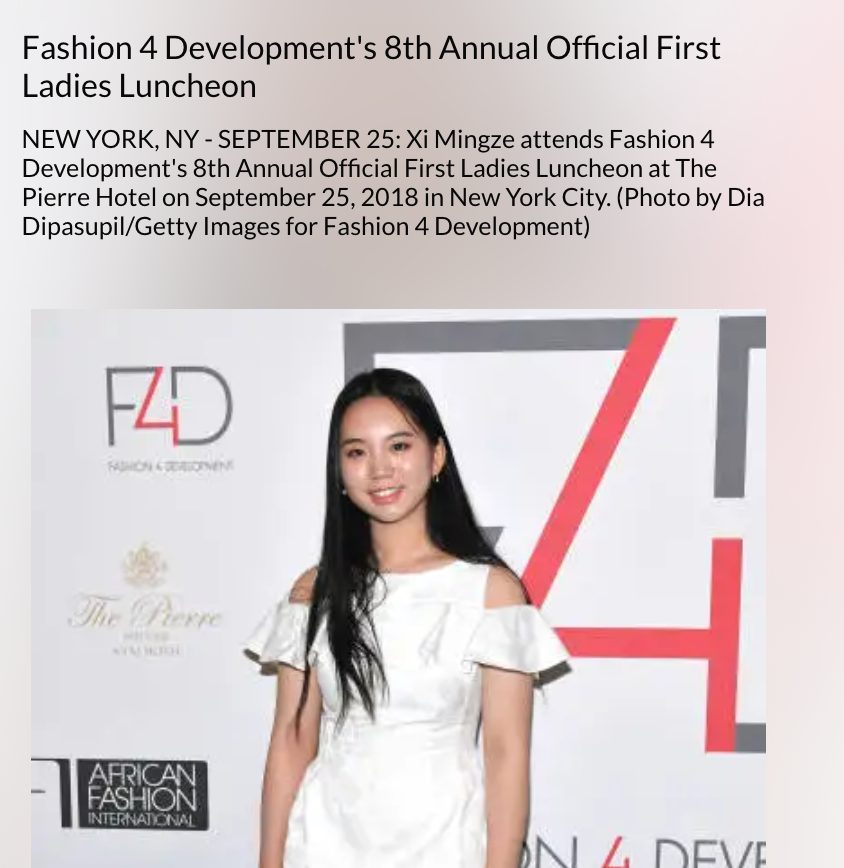 A reverse image search of the photo also led us to similar pictures on Getty, Alamy and Shutterstock. They show her at an event held by Fashion for Development in New York in September 2018. Getty had identified her as Xi Mingze. The Alamy image featured her with an older lady clad in pink. The caption said Peng Liyuan and Xi Mingze had arrived for Fashion 4 Development’s Annual First Ladies Luncheon. Meanwhile, the Shutterstock image’s description said it showed Noelle Xie and Fi (Catherine) Chen.