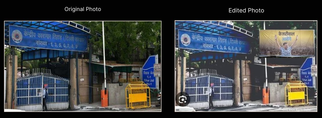 To sum up, the viral photos of ‘Kejriwal Aayenge’ hoardingsat the gate of Tihar Central Jail gate are doctored.