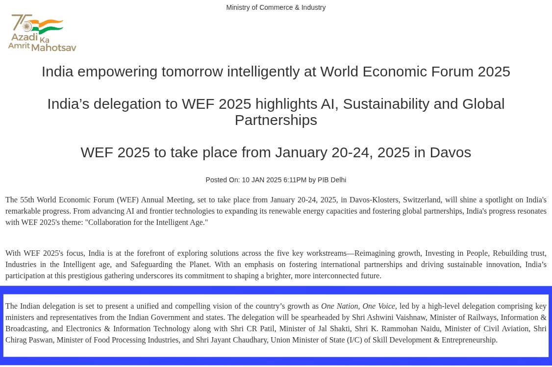 Alt News also traced a press release issued by the Union ministry of commerce and industry regarding India’s participation at WEF 2025. The release clearly names the delegation, which include union ministers Ashwini Vaishnaw, C R Patil, K Rammohan Naidu, Chirag Paswan, and Jayant Chaudhary.