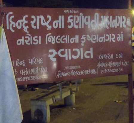 Last weekend, “Welcome to Hindu Rashtra” boards were spotted in various localities in Ahmedabad including Krishna nagar, Meghaninagar, Shahibaug and Anupam cinema areas of Ahmedabad. The boards have been put up by VHP and Bajrang Dal with names and contact numbers of organisers.