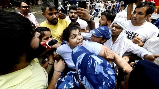 Some of India’s top wrestlers, led by Vinesh Phogat, Bajrang Punia, and Sakshi Malik, were detained by Delhi Police on Sunday, May 28, after they had been stopped from marching towards the new Parliament building from their site of protest at Jantar Mantar. The Wrestlers, who have been demanding the arrest of the Wrestling Federation of India (WFI) president and BJP MP Brij Bhushan Sharan Singh over allegations of sexual harassment by at least seven women wrestlers (including a minor), wanted to hold a women’s Maha Panchayat in front of the new Parliament building.
