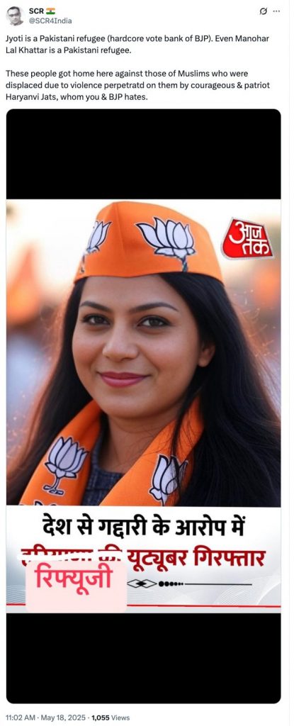 बीजेपी तुम्हारे साथ है..!!#JyotiMalhotraArrested pic.twitter.com/s4hqnNdrkz— ✼ ҉ ҉ ҉ ҉ 𝑺𝒉𝒊𝒁𝒖 ҉ ҉ ҉ ҉ ✼ (@Shizu____4evr) May 17, 2025